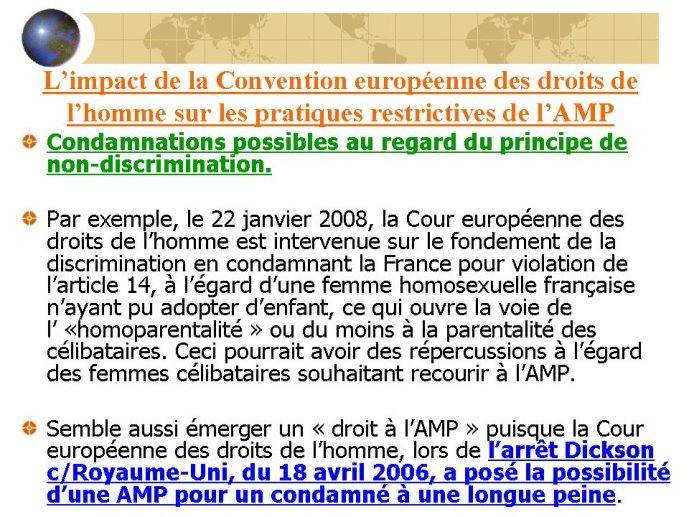 Résumé : Qu'est-ce que l'AMP ? La législation est très différente au sein de l'Union Européenne. Ne serait-il pas judicieux de tenter une harmonisation et de rechercher des solutions alternatives pour un consensus ?