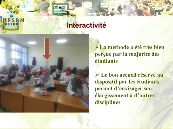 * Développement des solutions et usages des TIC à l’INSFPM de BATNA – Adel Bahaz PEPM et KamelMazmaza Directeur des Etudes à l’INSFPM de Batna (Algérie)