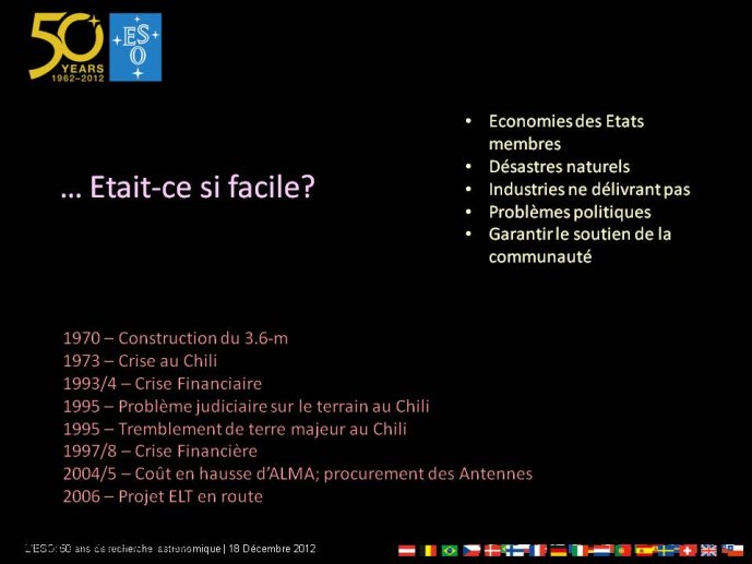 Daniel Kunth. CERIMES. (2012, 18 décembre). Les 50 ans de l'Observatoire Européen Austral (ESO). [Vidéo]. Canal-U. https://doi.org/10.60527/3n21-5c41. (Consultée le 14 décembre 2025)